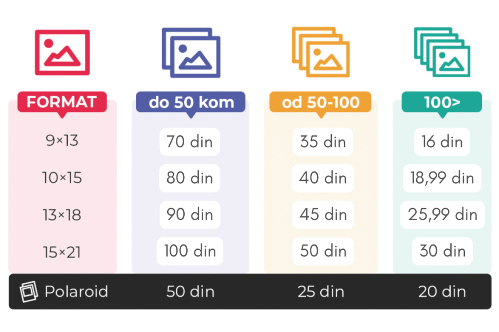 | 10×15 | 80 din | 40 din | 18,99 din |